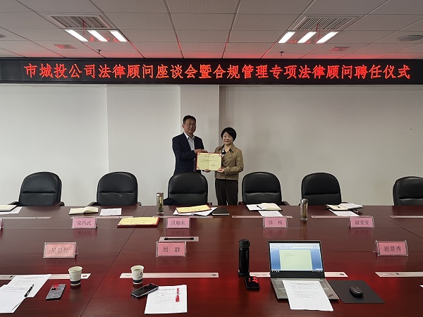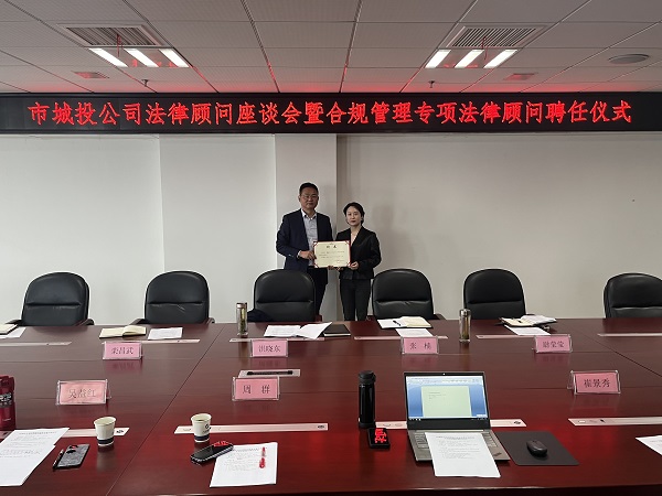 为强化公司法律顾问管理,推动合规管理体系建设,4月10日,市城投公司举办法律顾问座谈会暨合规管理专项法律顾问聘任仪式,公司党委副书记、总经理洪晓东主持会议,公司法务部、财务管理部相关同志参加会议。