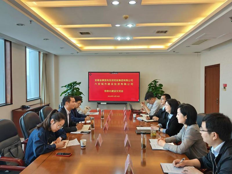 10月16日下午,金寨县国控集团董事、总经理金永峰,总经济师、集团财务中心主任付敬一行来公司考察学习信息化建设工作,公司党委委员、工会主席张莉,公司综合管理部、财务融资部、工程采购部相关负责人参加交流座谈。