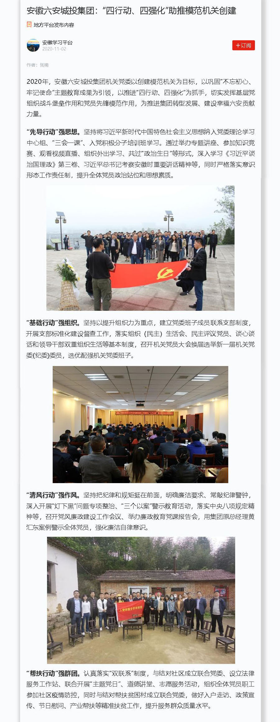【学习强国】安徽六安城投集团:“四行动、四强化”助推模范机关创建