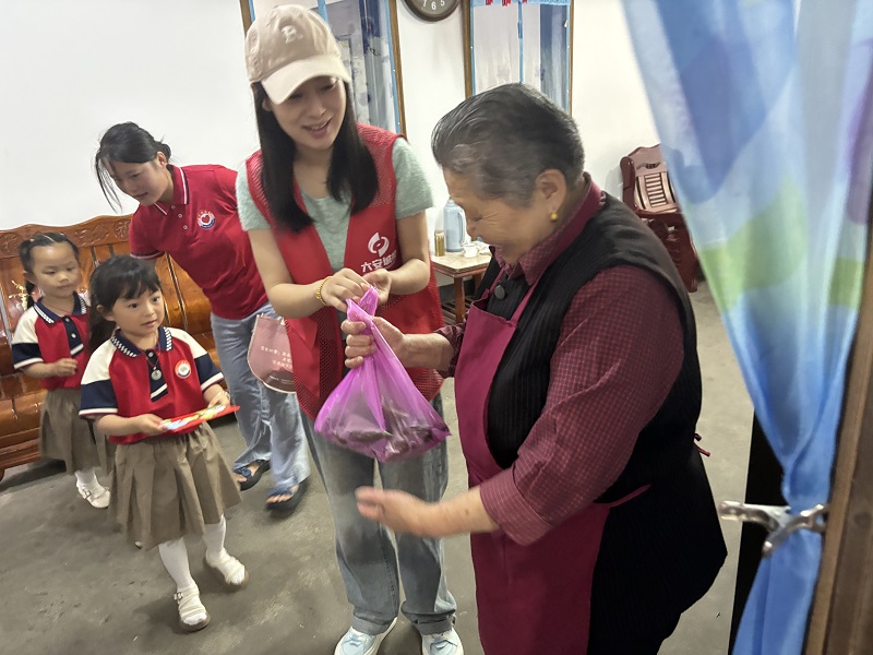 随后,志愿者带着包好的粽子和幼儿园的小朋友们一起去看望社区孤寡老人,并为他们送上了代表健康、平安的端午香包和节日卡片,饱含着对美好生活的衷心祝愿。