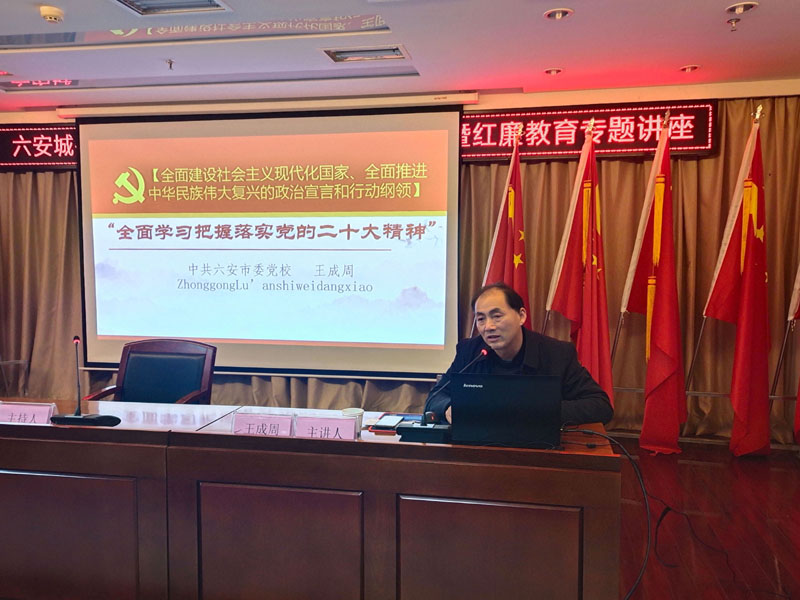 10月16日,市城投集团举办学习宣传贯彻党的二十大精神暨红廉教育专题讲座,邀请市委党校经济学教研室主任、副教授王成周作专题辅导报告。集团党委书记、董事长荣扎厚主持会议,集团部分党员干部及职工代表参加。